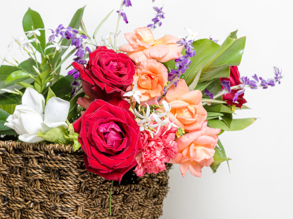 Vintage mixed pink flowers basket This flowers basket includes lilies, pink roses, caspia and eucalyptus. Remarks: - Arrangement and flowers may vary slightly according to season and delivery area. - Please order the flowers and complete the payment prior the delivery time...